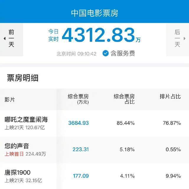 本来,这几个月就不是会有大片冲击的时间段。上映的都是配合时令节假日小成本、女性题材等作品。没有正经大片,更没有一部什么能够全年龄段覆盖的作品,《哪吒之魔童闹海》会持续没有同类竞品。